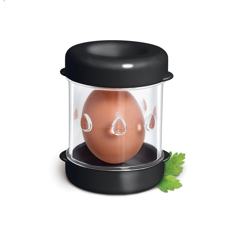 • You can now slide the egg out of the shell. Shake the egg peeler up and down just enough for the egg to hit the lid. Just remember to take it easy or you'll end up with a mess of egg shells.
