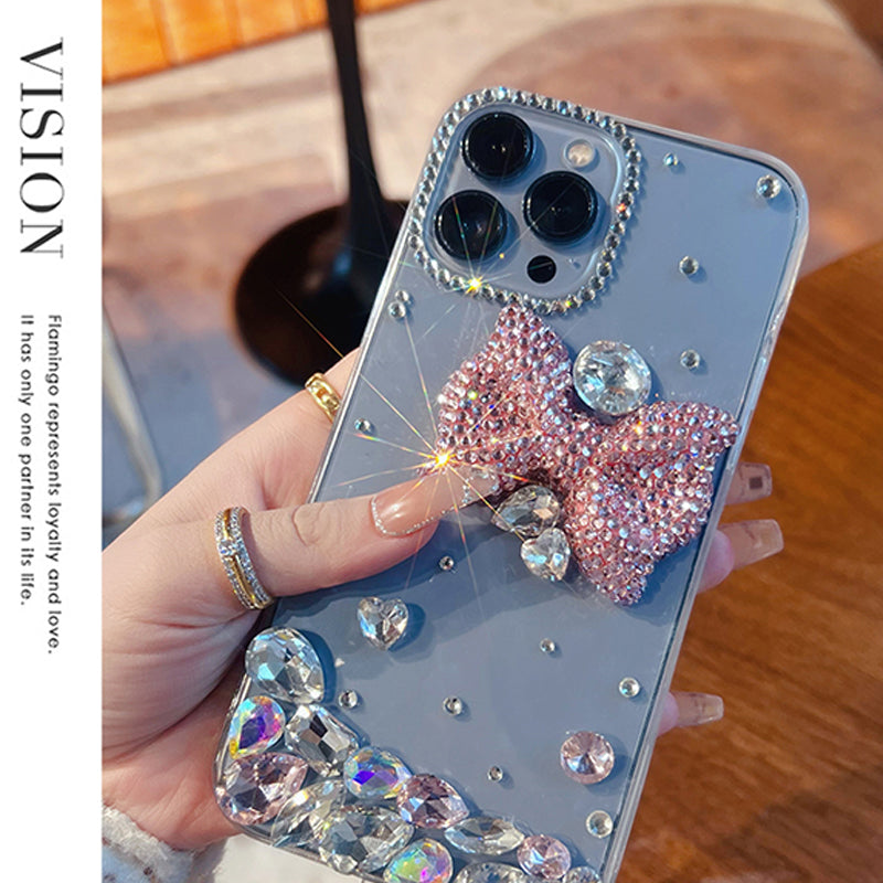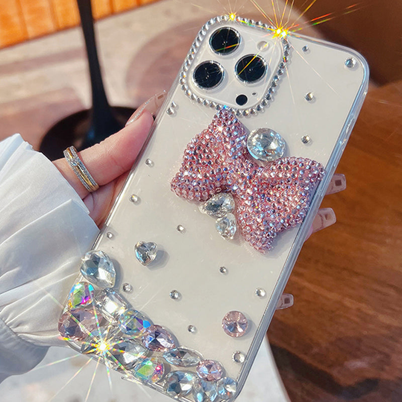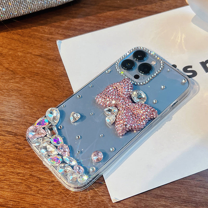 Compatible Models: Luxury 3D Bow Shiny Rhinestone Phone Case Soft Flexible Silicone Case Compatible with 12 and 13 Series.