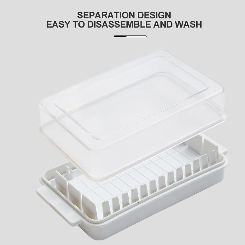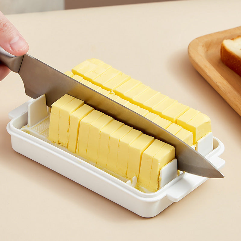 UPDATED VERSION Butter dishes with cutting case. The butter must be softened and placed in the middle of the cutting mesh. It doesn't need any tools, it can cut.