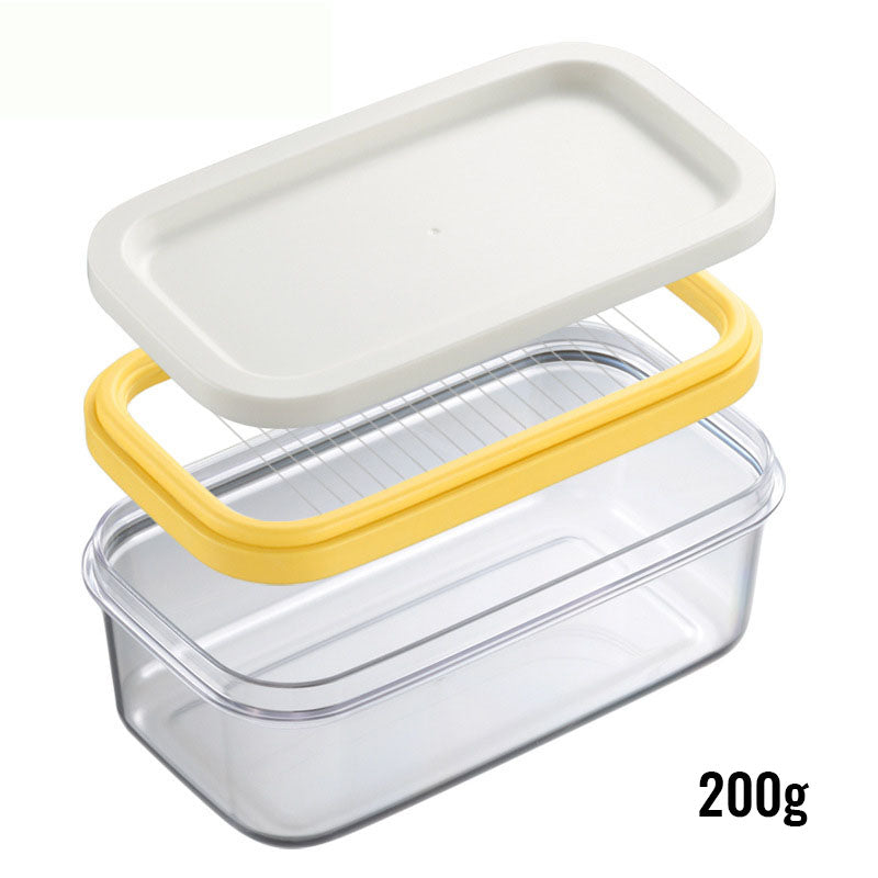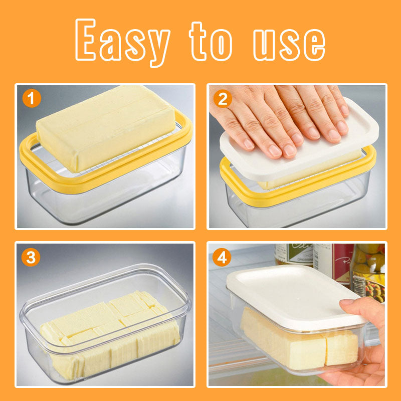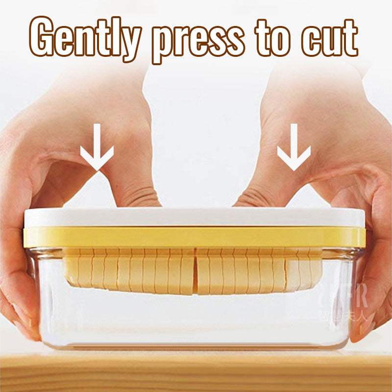 The lid covers the butter when stored and doubles as a slicer, just place the stick of butter on top and press. After cutting, the butter cubes are arranged in the box, which is very convenient for one-time use.