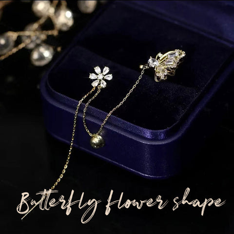 European and American butterfly flower ear bone clip ear wire integrated earring niche design high-end light luxury tassel earrings