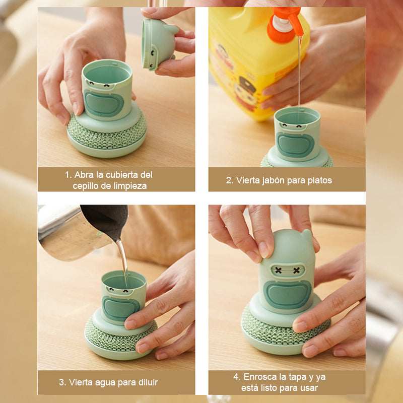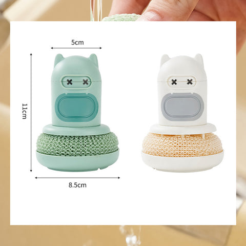 🍳🌈Experimenta el placer de limpiar con nuestro cepillo para fregar ollas con relleno automático de dibujos animados. ¡Ordene ahora para una limpieza de cocina fácil y divertida! 🌟🧽