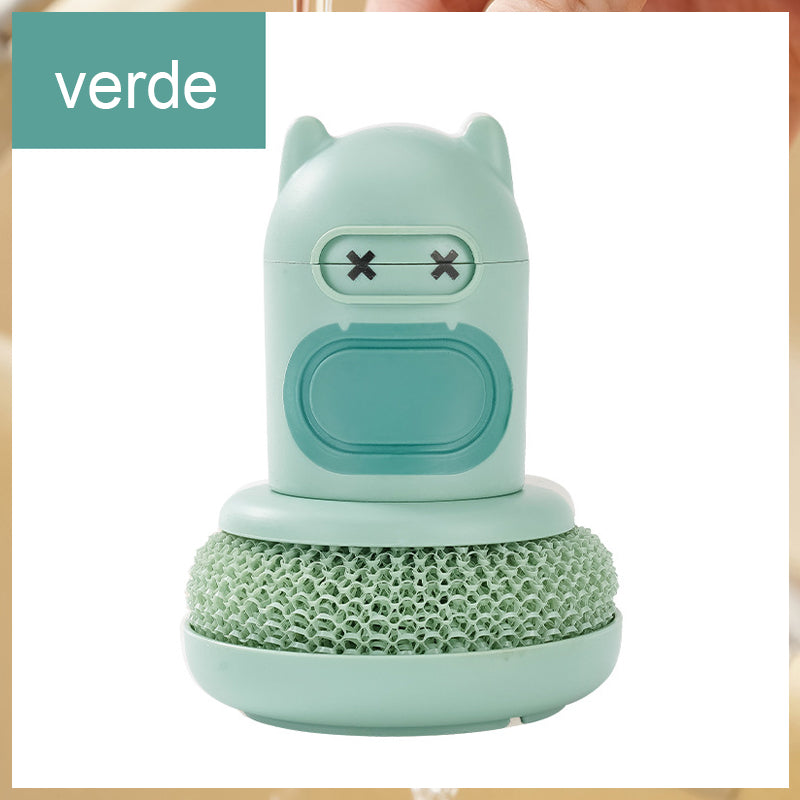Presentamos un elemento esencial de la cocina que combina funciones extravagantes y prácticas: un cepillo para fregar ollas con adición de líquido automático y tipo dibujos animados. Dígale adiós a la molestia de limpiar ollas y sartenes con este innovador y adorable compañero de limpieza.