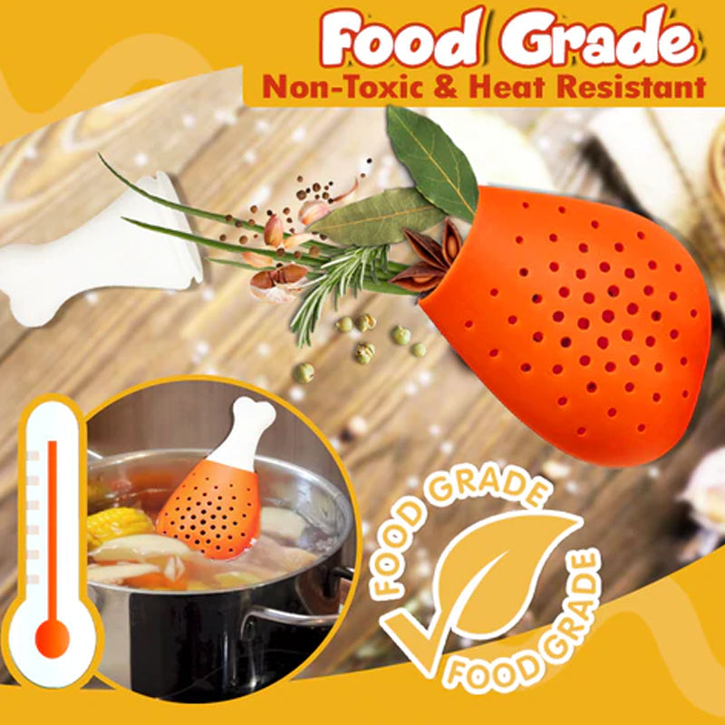 Fun design: With its fun drumstick chicken design and bright color it will add up excitement to your cooking and bring some fun to your kitchen. Its hollow design will let the flavors and spices easily spread on the soup while boiling on the water.