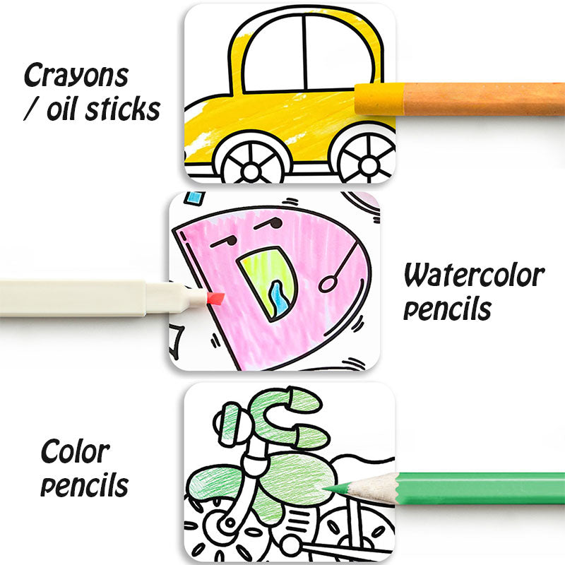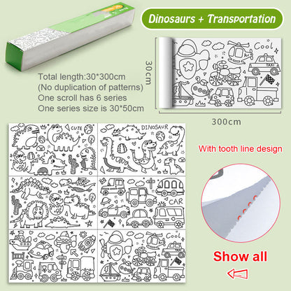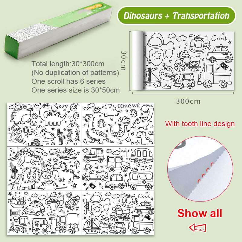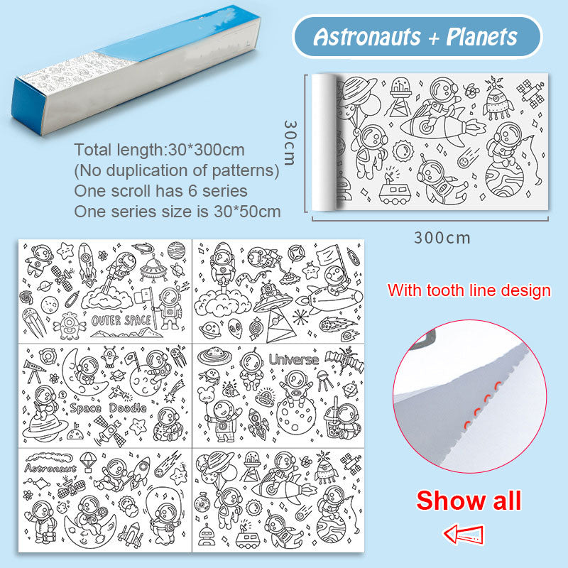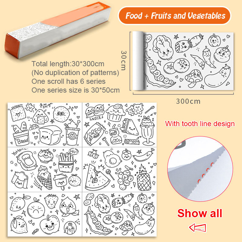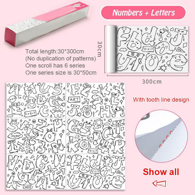😍 Drawing paper roll suitable for different coloring supplies, included pencil/markers/crayons, etc.