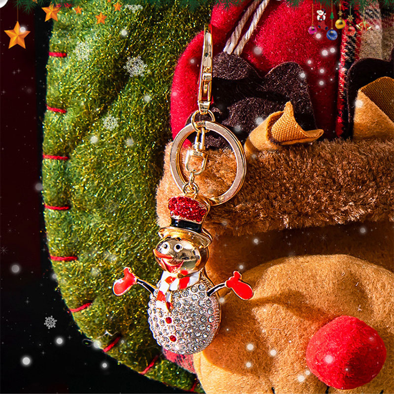 Package list: 1 * Christmas Snowman Rhinestone Keyring Pendant