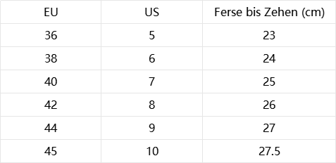 Unsere Cloud-Hausschuhe fallen in der Regel 1-2 Größen kleiner aus. Um Ihre richtige Größe zu ermitteln, wählen Sie 1-2 Größen größer.