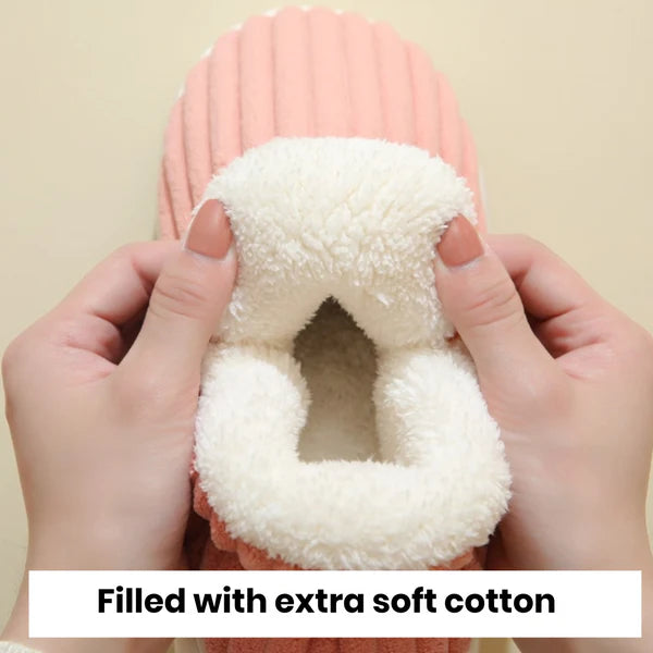 Unsere Cloud-Hausschuhe bestehen aus kuscheligem, warmem Flanell-Fleece mit orthopädischen Sohlen, um den Druck von Ihren Füßen sofort auf Ihre Hüften zu verteilen.