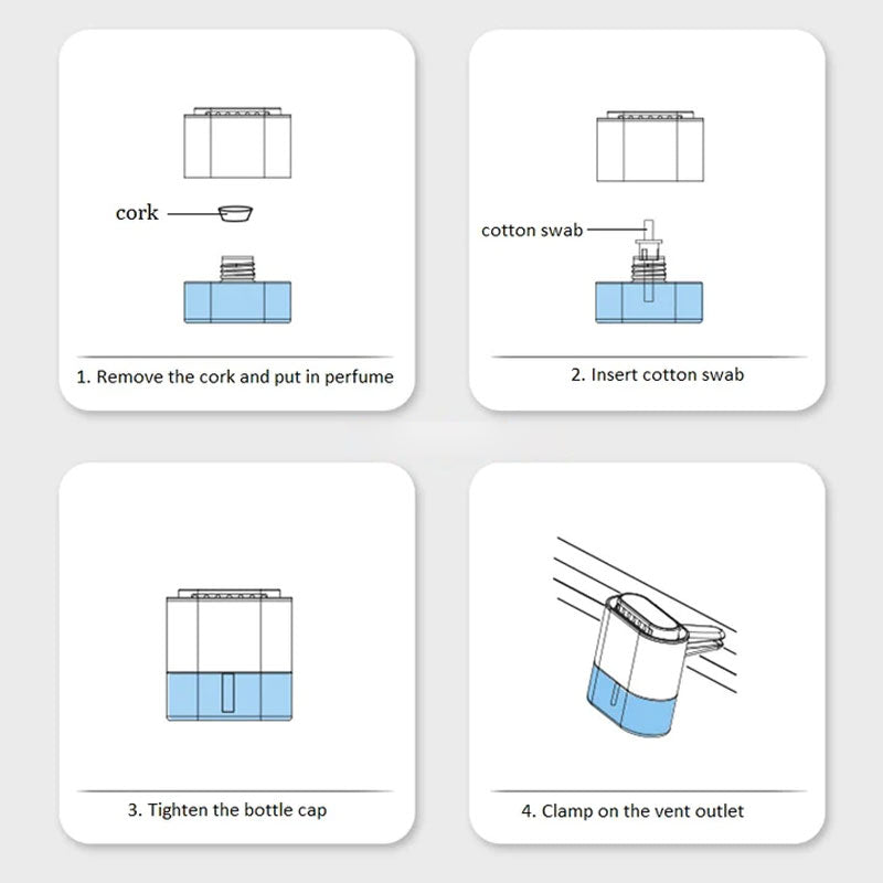 Installing and using our car aroma diffuser is very simple. Simply connect it to the vent, add your favorite scent, and let the device do the rest.