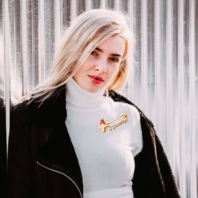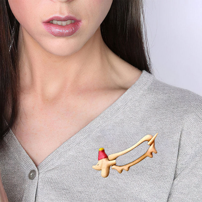 1 x Cute Pet Series Woodcut Sweater Brooch - Dachshund