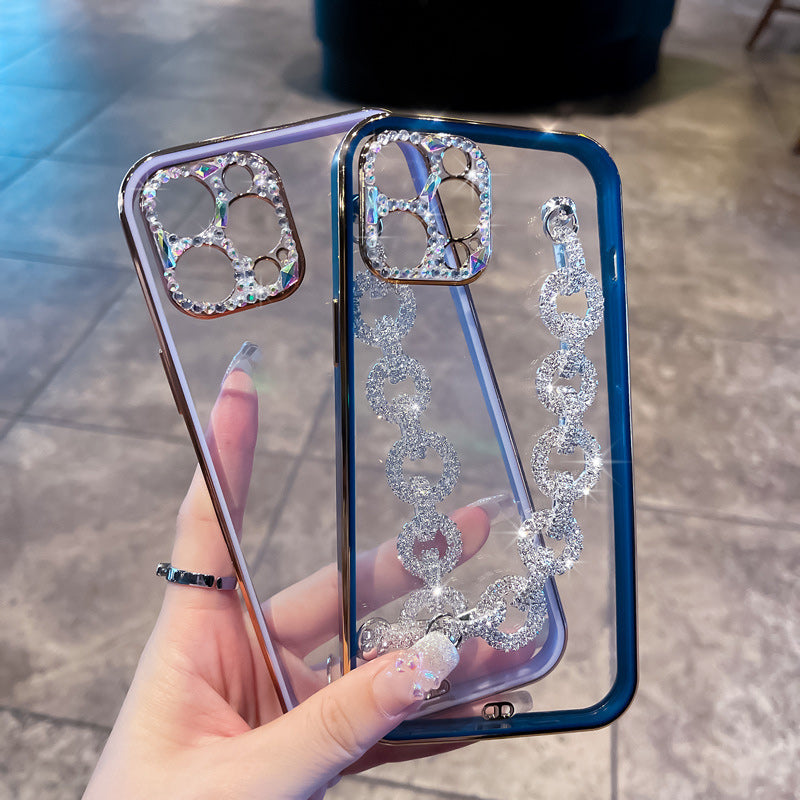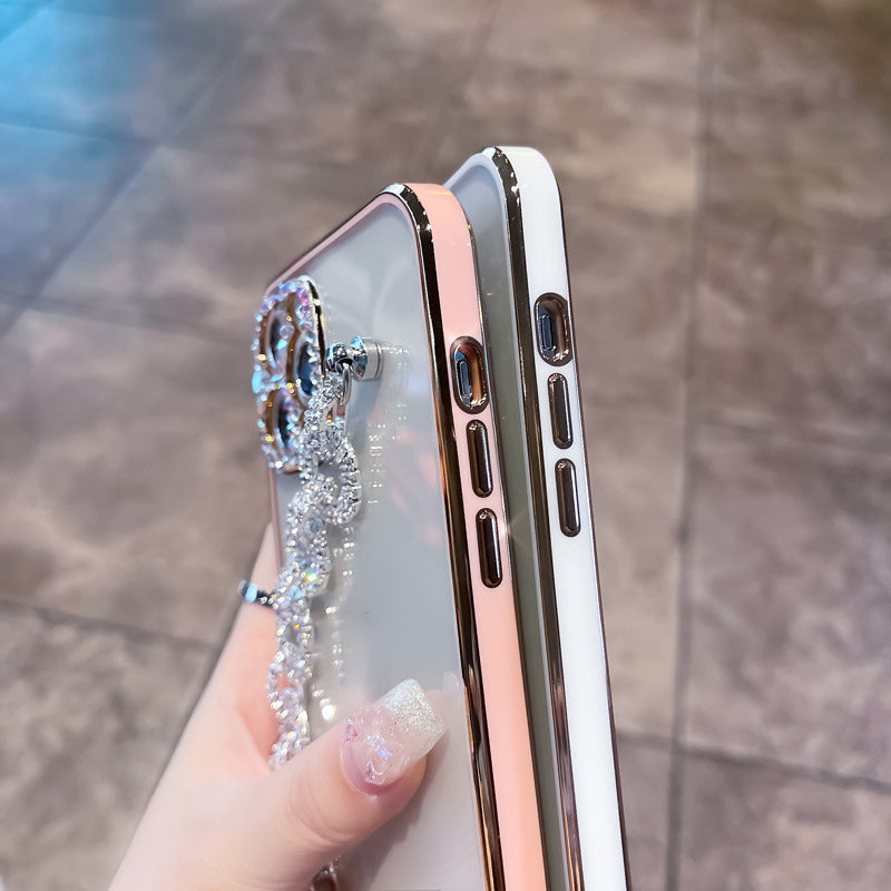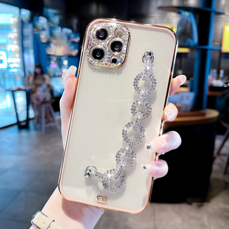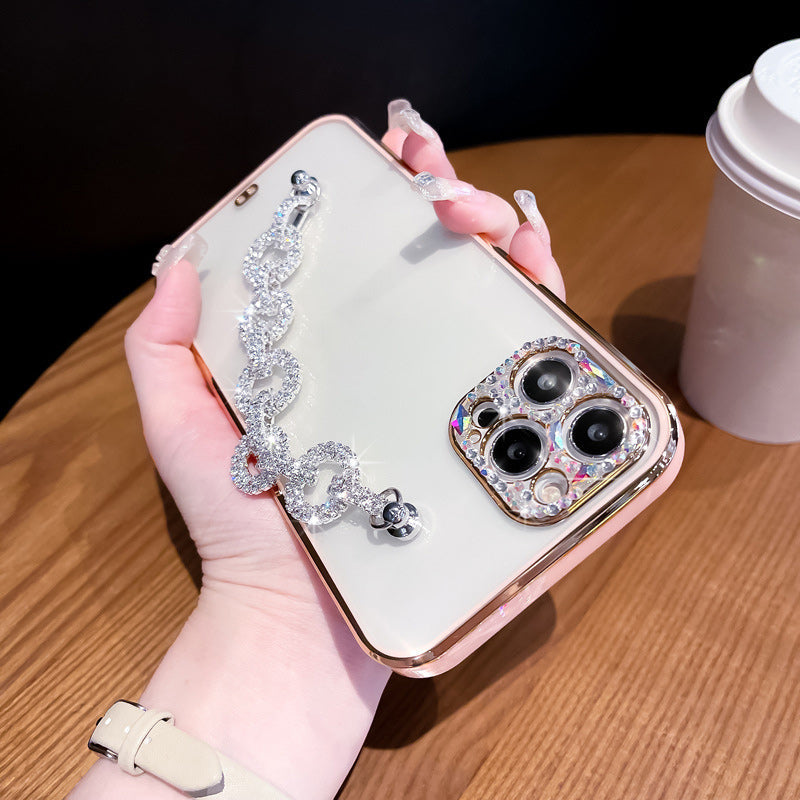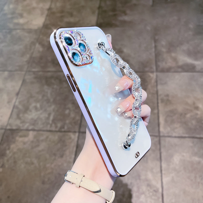 - Texture: TPU electroplating rhinestone bracelet phone case.