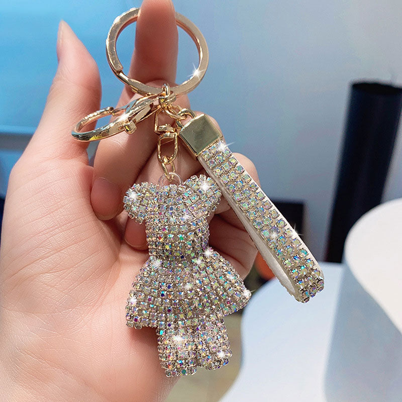 Are you looking for a car key cover pendant? Look at our Diamond Violent Bear Key Pendant. Made of high quality zinc alloy and artificial coloful rhinestones. Perfect for decorating your car keys! It is also a great gift choice for friends and family!