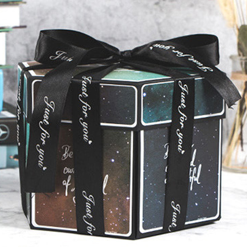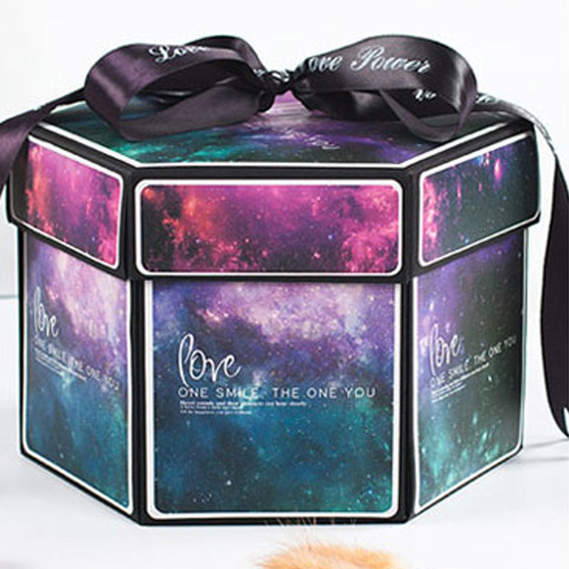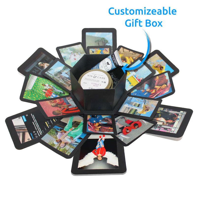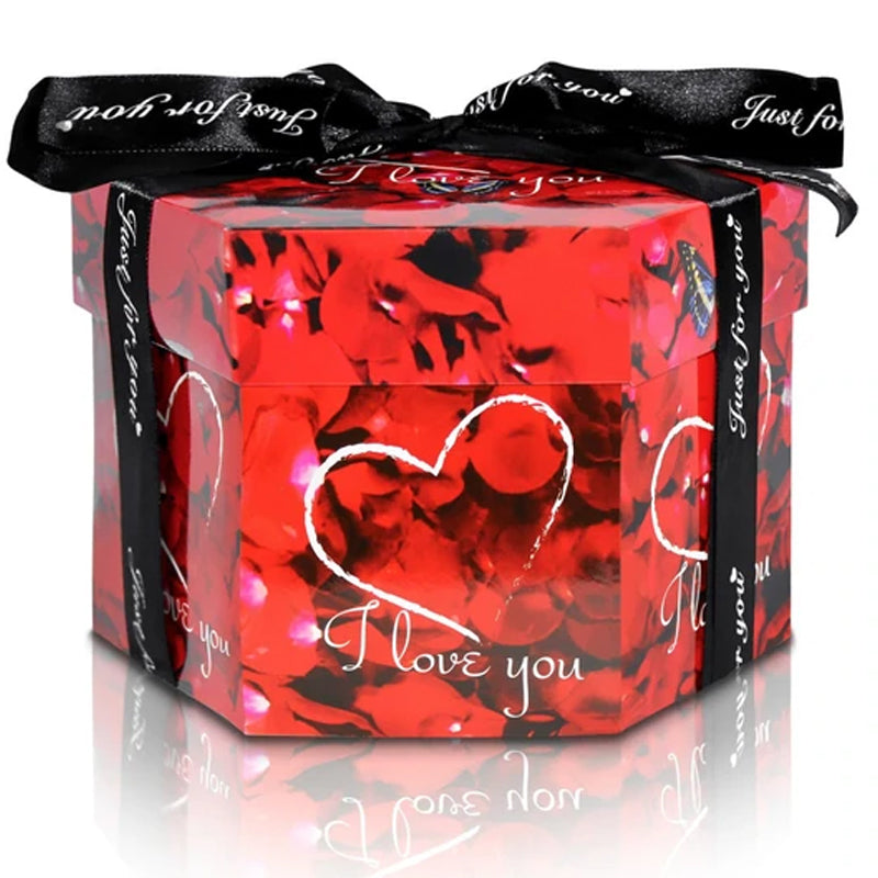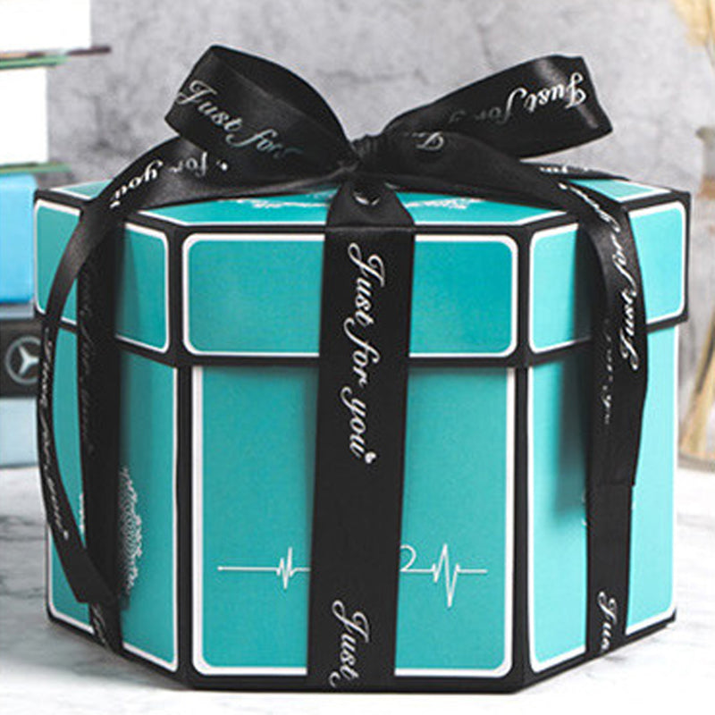 Creative Explosion Box : When closed, it looks like a gift box. Once opened, the gift box with 6 faces will explode, all the sides fall back to reveal a custom personalized multi-layered treasure box filled with pictures and special messages.