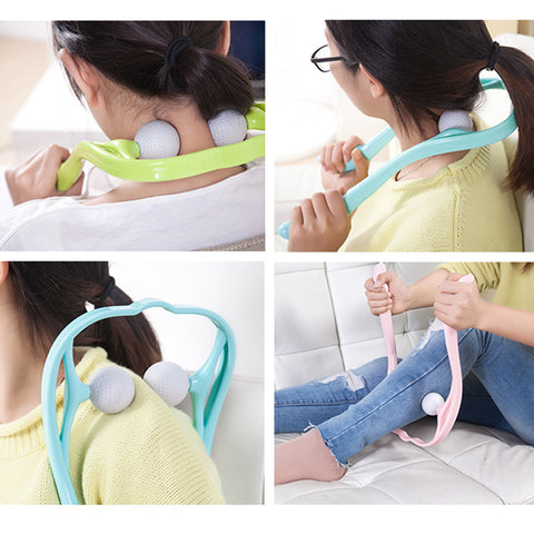 The dual pressure point massager relieves pain by applying direct pressure and massaging your trigger points at your neck, back and shoulders. It massages, squeezes, and kneads away all tensions and pain.
