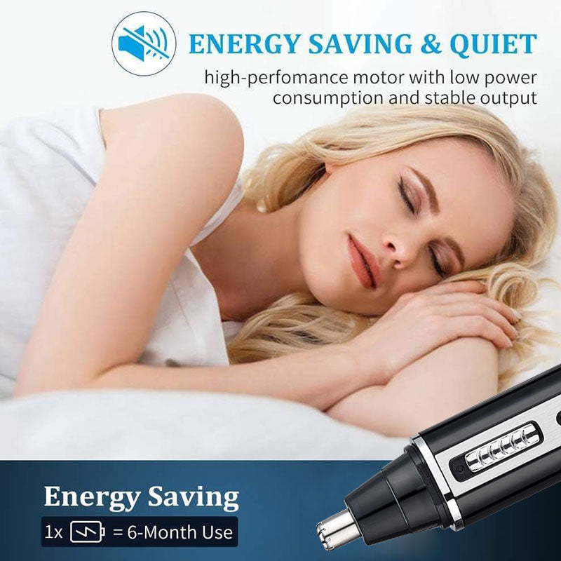 The washable and detachable cutter head is easy to clean and maintain. The user-friendly and convenient body design is equipped with a dust cover to protect the nose hair trimmer head. More importantly, it uses a silent noise reduction system, no noise, you can trim your hair comfortably and quietly.