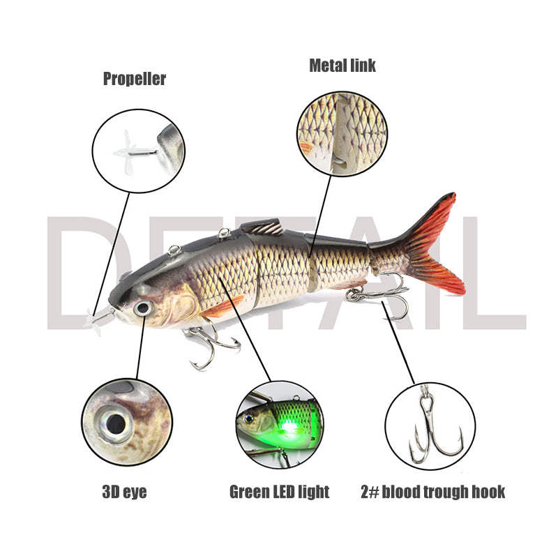 • Swimming Lure Wobblers For Fishing 4-Segement Swimbait Crankbait USB Rechargeable Flashing LED light Twitching Metal connect jointed swimbait.