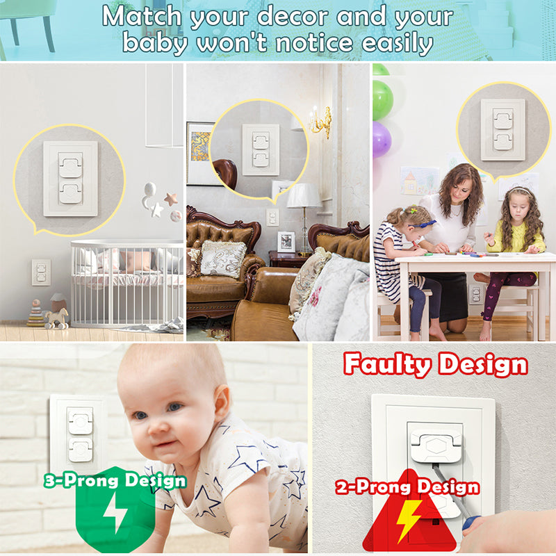 The baby-proof socket cover is made of ABS plastic with excellent electrical insulating properties. Unlike other cheap brands, our socket cover has a smooth surface without burrs, so no matter how your baby tries to use it, it won't hurt your baby's fingers.