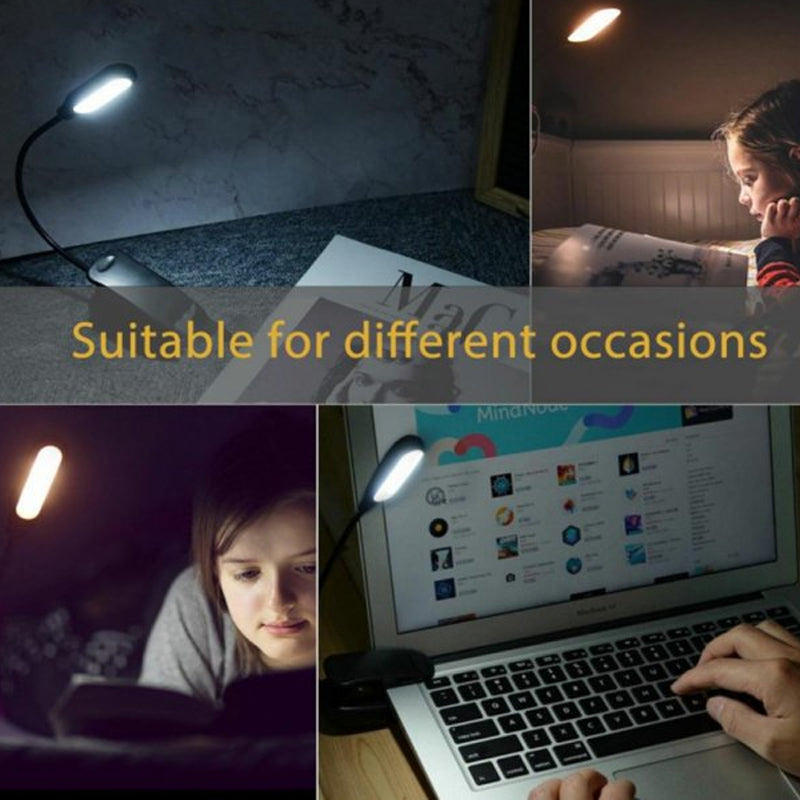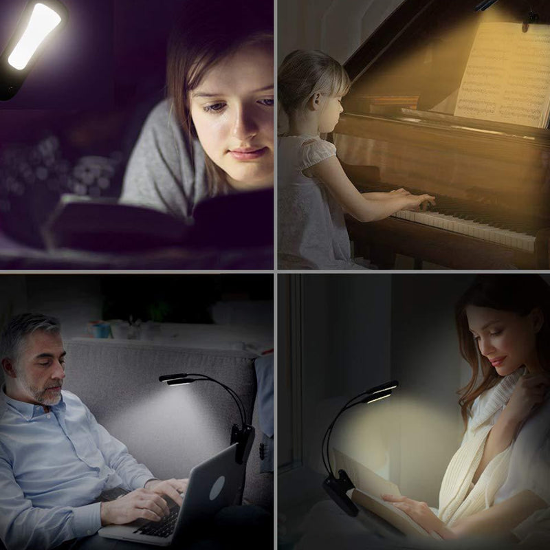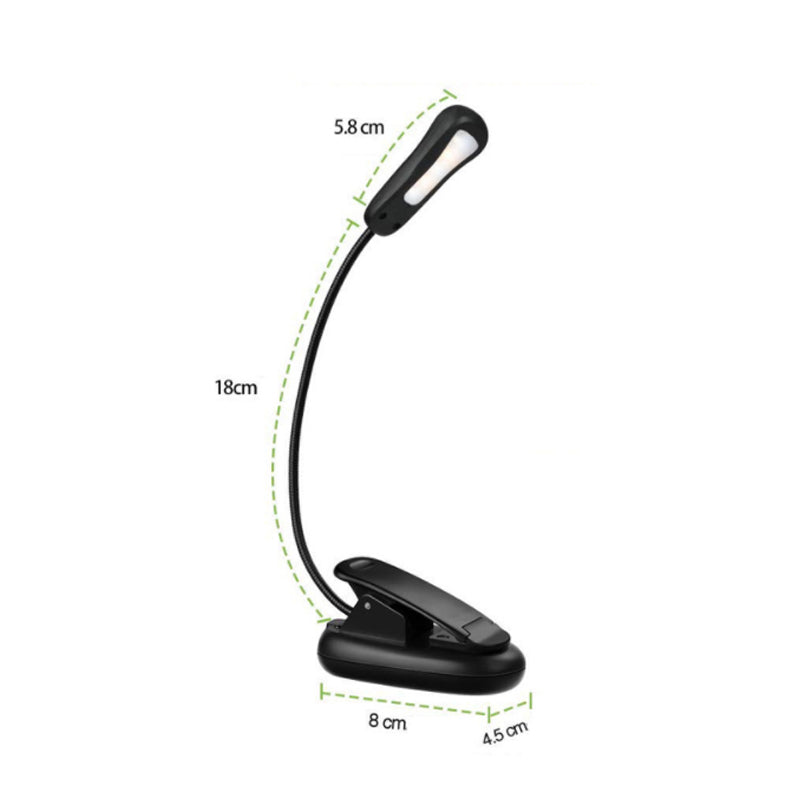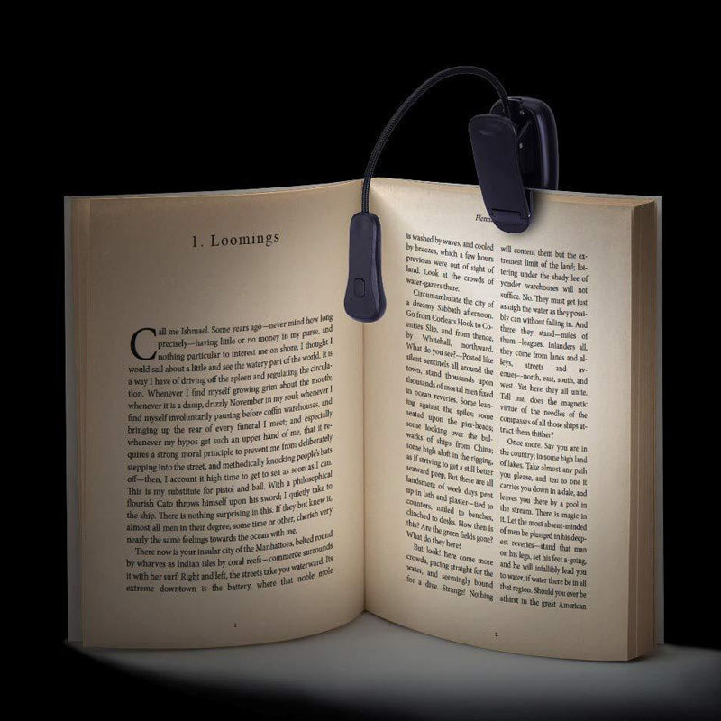 A clip on the base allows the reading light to stand on its own. Leave your hands free to read on bed, work, travel, camping lights and more.