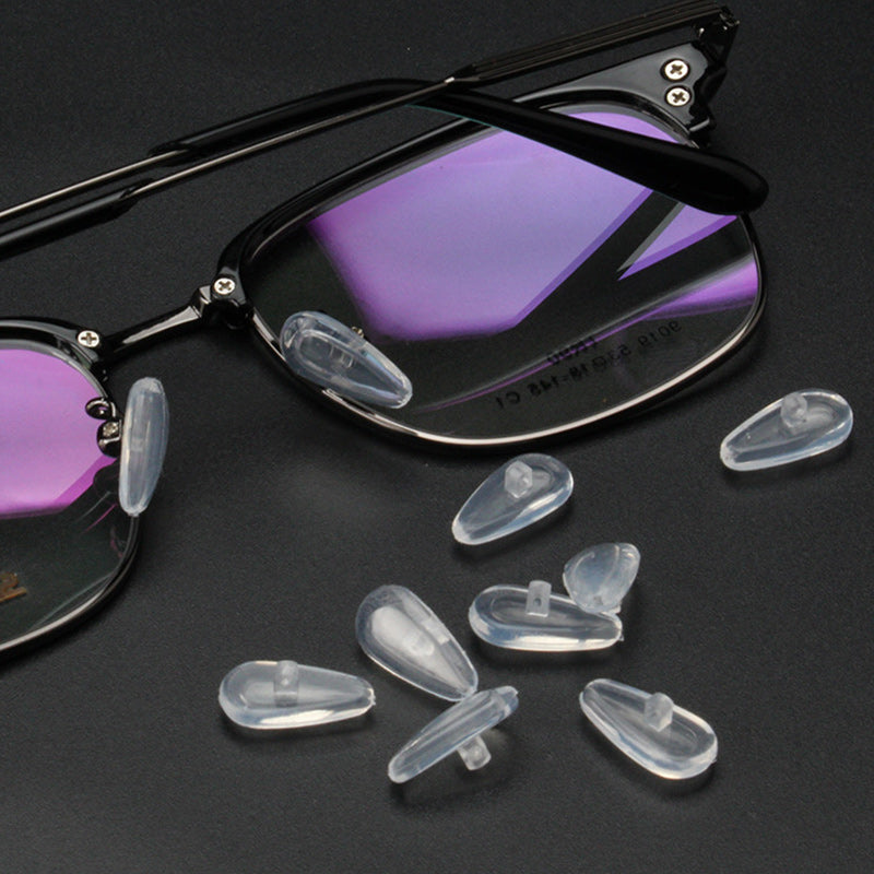 These are made of super-soft flexible silicone to fit a variety of glasses. These nose pads make glasses feel great, sit better, and eliminate any pain or discomfort. There is a small hole at the bottom of each silicone nose pad, that is for reducing the pressure caused by the frame and protecting your nose bridge.