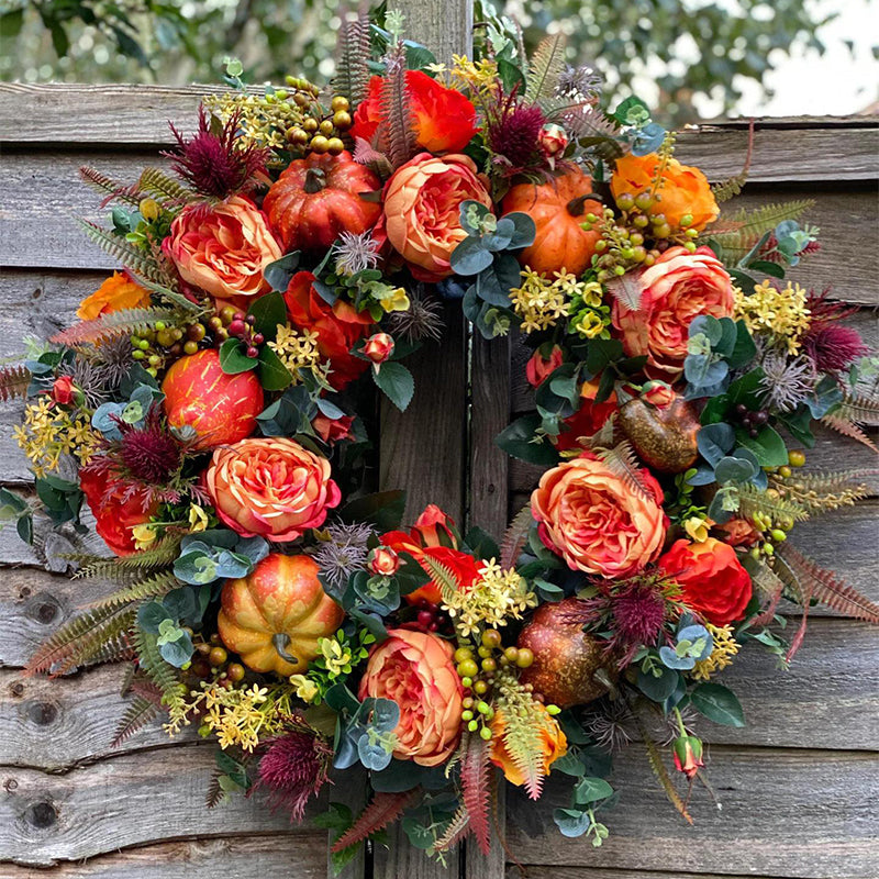 💖This lovely farmhouse-style pumpkin door hanger will look lovely gracing your front door this fall! Use this faux peony pumpkin wreath to say "Welcome to our home" throughout the season.💖Enjoy this beautiful, deluxe wreath for years to come! Welcome your guests with this stunning Forever autumn pumpkin wreath.