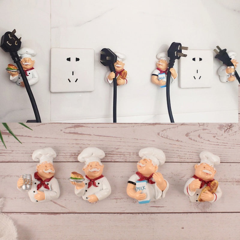 Material Little Chef Rope Rack Made of resin, high quality handcrafted, durable and not easy to fade. Fat chef kitchen decoration.