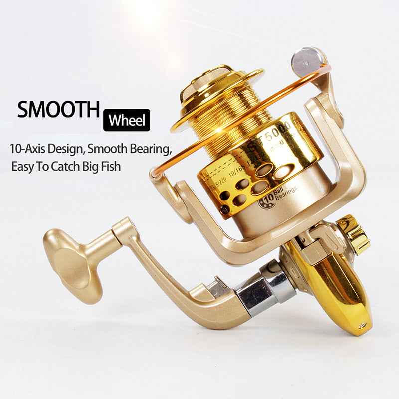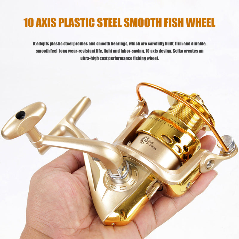 SMOOTH AND DURABLE: The spinning reel is fortified with metal main shaft and components and equipped with 10 ball bearings. Quality ball bearings and one instant stop one-way anti-reverse bearing give it ultra-smooth performance. And the friction is very small to ensures long use.