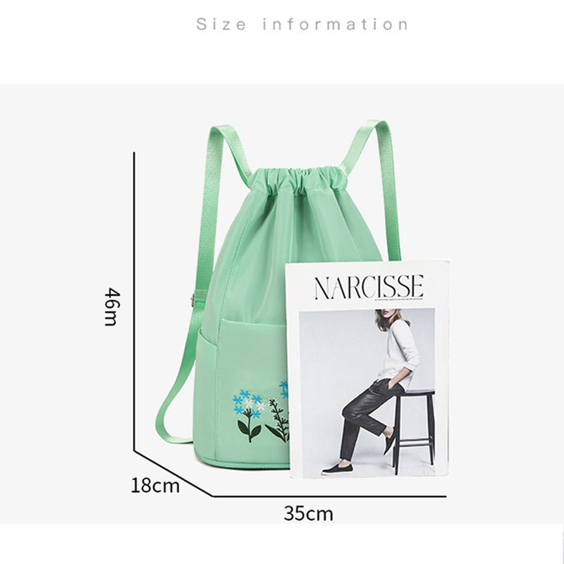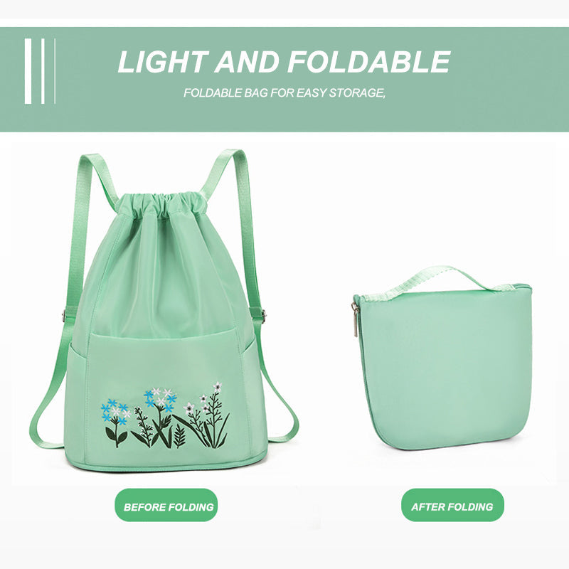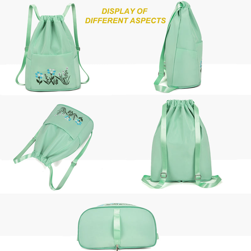 Durable - This drawstring bag is made of waterproof, soft oxford, polyester. The drawstring bag is easy to clean, recyclable, water resistant, allowing you to put your towels and wet clothes in your swim bag without leaving behind. The fabric is blended with bright yarn for a more beautiful look.