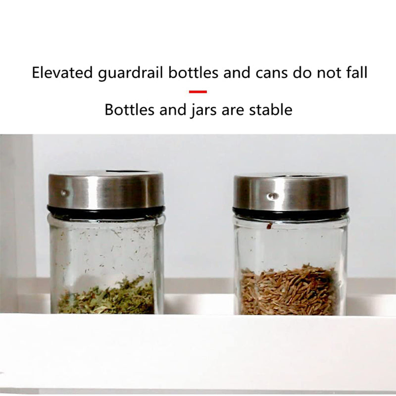 No need to drill holes or use screws. Adhesive feet on our spice rack organizer provide a stable stand. Of course, everything can be removed without residue. The UPP Pull Out Spice Rack Cabinet holds up to 20 spice jars! Great for organizing spices, but also for makeup or as a medicine cabinet, not only does it provide a lot of storage space, it's quick and easy!