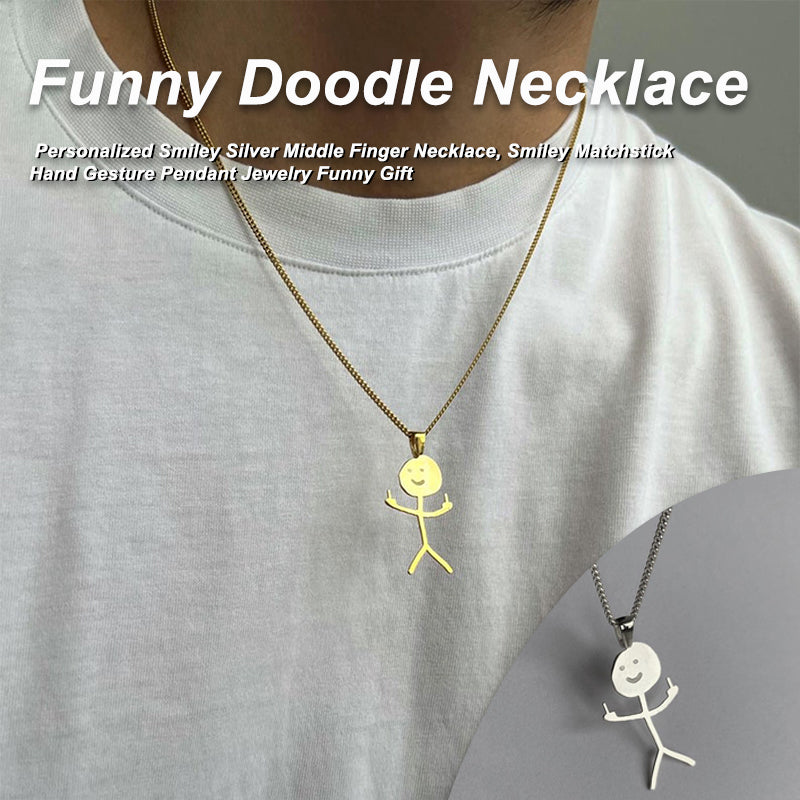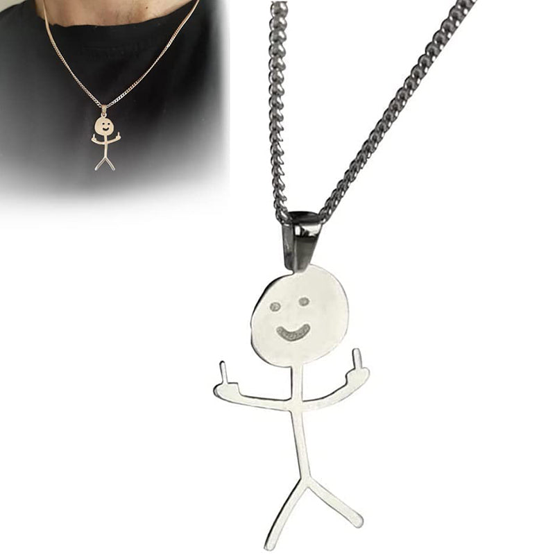 😃 Smiley Middle Finger Necklace Material The necklace is made of high quality stainless steel. Highly corrosion-resistant, rust-proof, colorfast, and environmentally friendly. Does not cause any allergies to your skin.