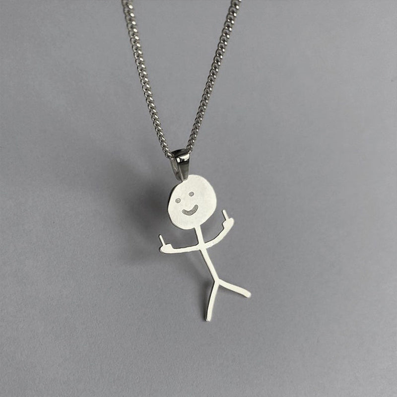😃 Gesture Necklace Made with 18" long necklace chain and graffiti pendant. It's a unique, fun, and minimalist necklace that's perfect to wear alone or layered with other necklaces.