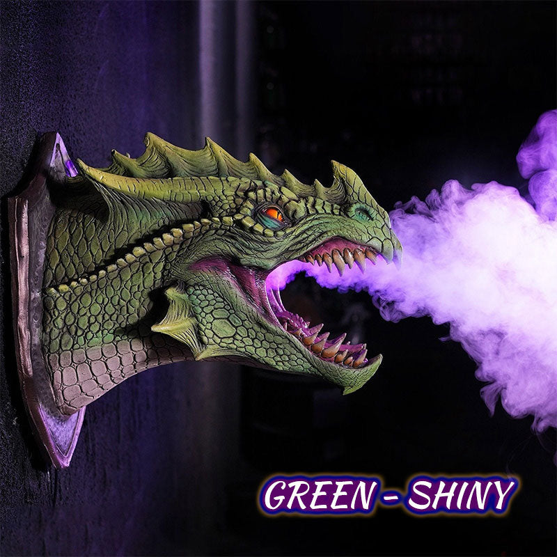 💜【Unique Design】This amazing piece of dragon art is made of durable latex skin, filled with foam and designed to hang on a wall. Includes a fog machine and LED light that fits inside the head so your Dragon can blow "smoke and fire".