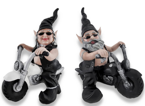The ultimate collectible home and garden figurine statue assortment for the "Biker" or motorcycle enthusiast. They are a great gift for the "Biker" couple in the family or neighborhood.
