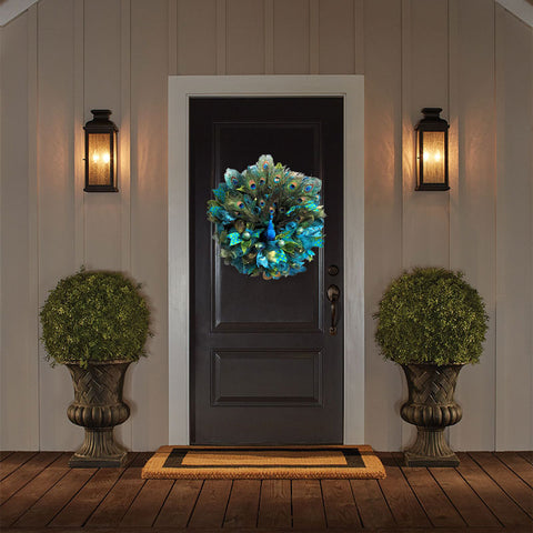 Perfectly designed to add a touch of elegance and a burst of colors to any space, the Gorgeous Peacock Blossom Wreath is a symbol of grace and prosperity.
