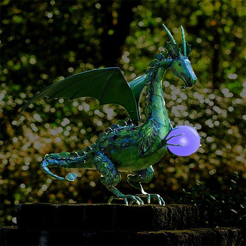 🐉In some cultures, the green dragon is thought to represent Earth and can symbolize power, strength and luck. It is sometimes depicted holding a “flaming pearl,” which symbolizes its wisdom. 🐉Our gorgeous dragon of blues and greens and leafy scales is not only an eye-catching accent for your yard or garden, but its pearl will help light the way to your front door using solar power technology.