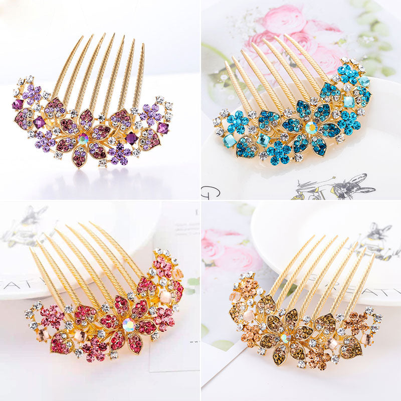 • You can use Korean style rhinestone hollow out colorful flower decor hair comb to quickly DIY hairstyle, helping girls and women to design different hairstyles at will, such as buns, bridal buns, updo and more. Wearing this delicate hairpin will make you more attractive and elegant.