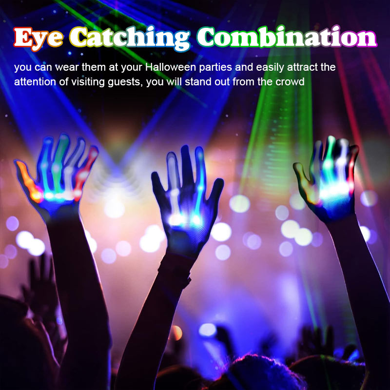 🌟 Glowing Design: These gloves feature luminous technology that emits a mysterious glow at night, making you stand out during your Halloween celebrations.