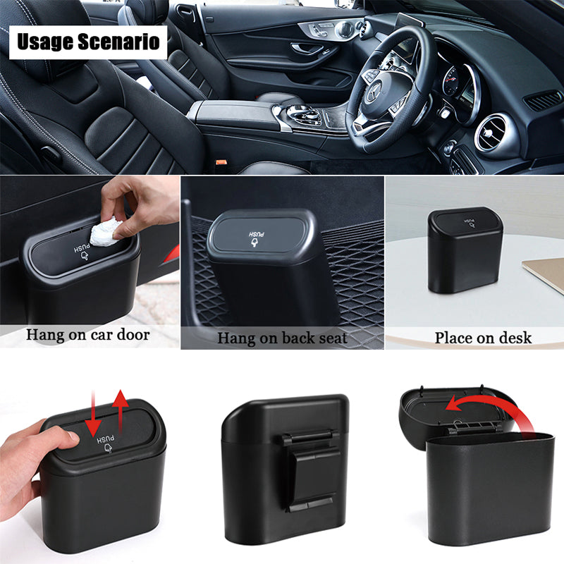 đ„ăEasy installationă: The back of the auto trash can with heavy-duty hook makes it easy to install. It can be hung on the edge of the door and the rear seat, or placed on the center console.