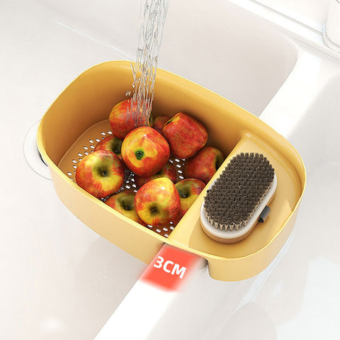 ~Multiple Functions Water can be drained from grooves bottom with holes, and can be used to wash vegetables, filter noodlesor or filter kitchen waste. On the other end with non-slip texture, can storage sponge, dishwash brush and soap.