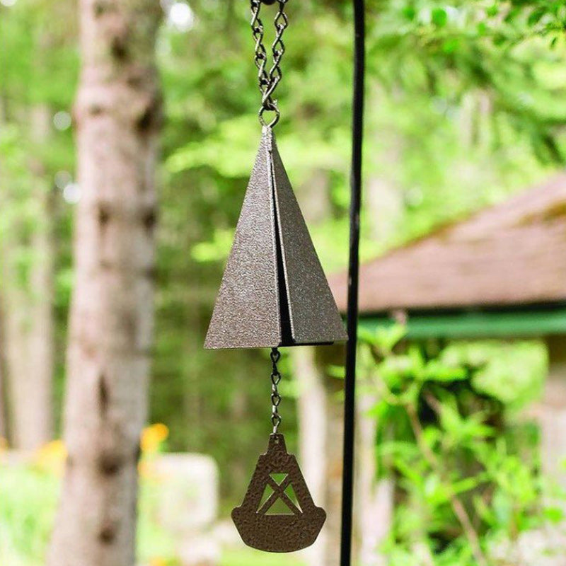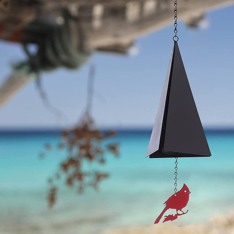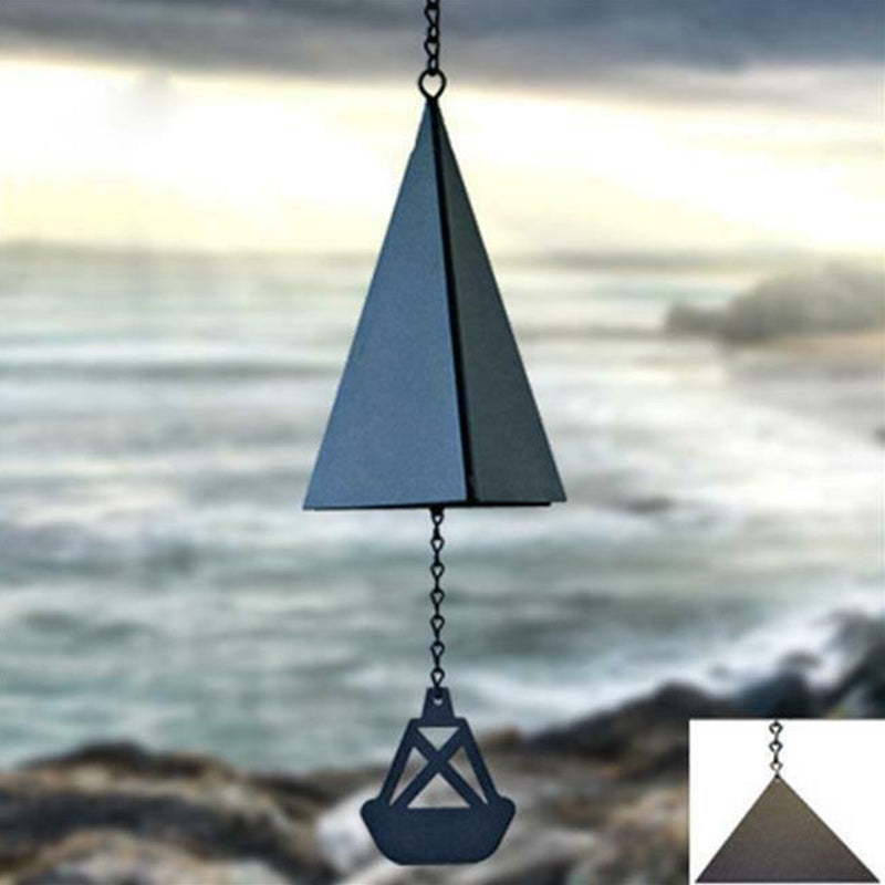 This Wind Bell captures the soul-soothing, melodic tones of distant buoy bells rocking in the ocean. The triangular form provides 3 distinct pitches and catches the passing breeze with a choice of wind-catcher to reflect your taste: choose from CompassCardinal,Watchtower, Buoy, orCompass. The wind bell is made of quality steel (60% of which is recycled steel) and given a full powder-coating for durability outdoors year-round. Bell portion measures 10" tall (approximately 16" with wind-catcher) and includes a 7" chain.