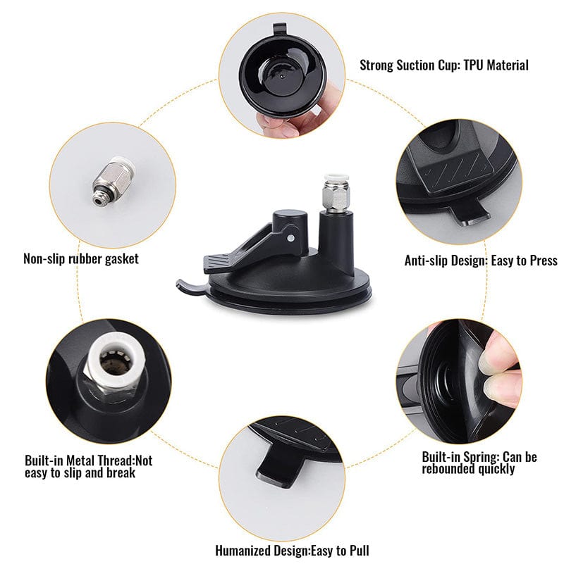 The suction cup base can be attached horizontally and vertically to any flat and hard surface such as hardwood floors or windows.