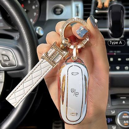 Design and sign: New design with gold border, elegant and elegant. Original 1:1 keychain design, fits perfectly. Complete signal, this key cover will not affect the signal.
