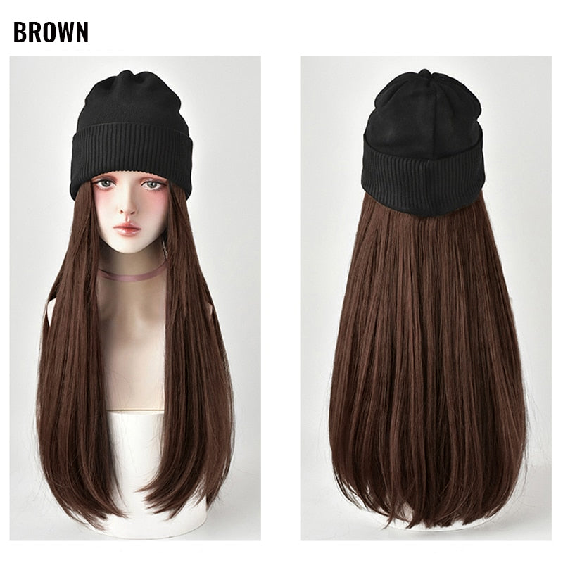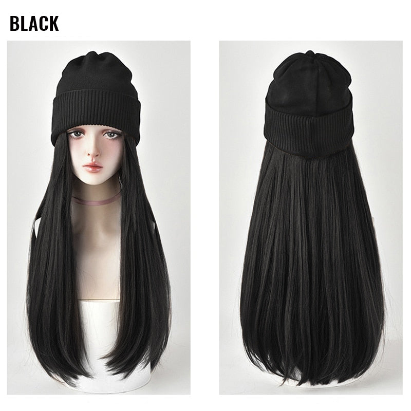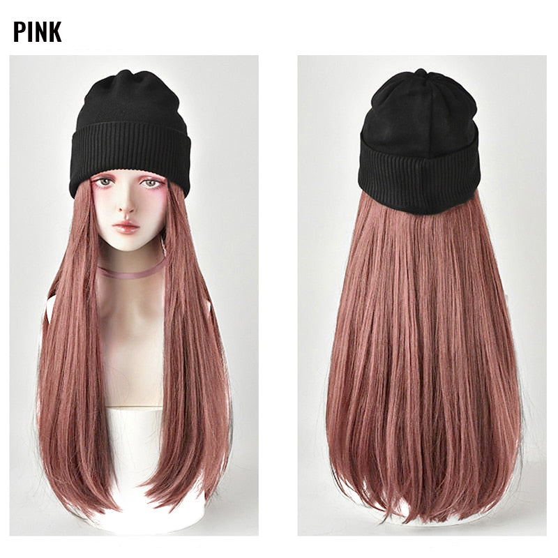 1 × Knitted Long Hair Wig Hat