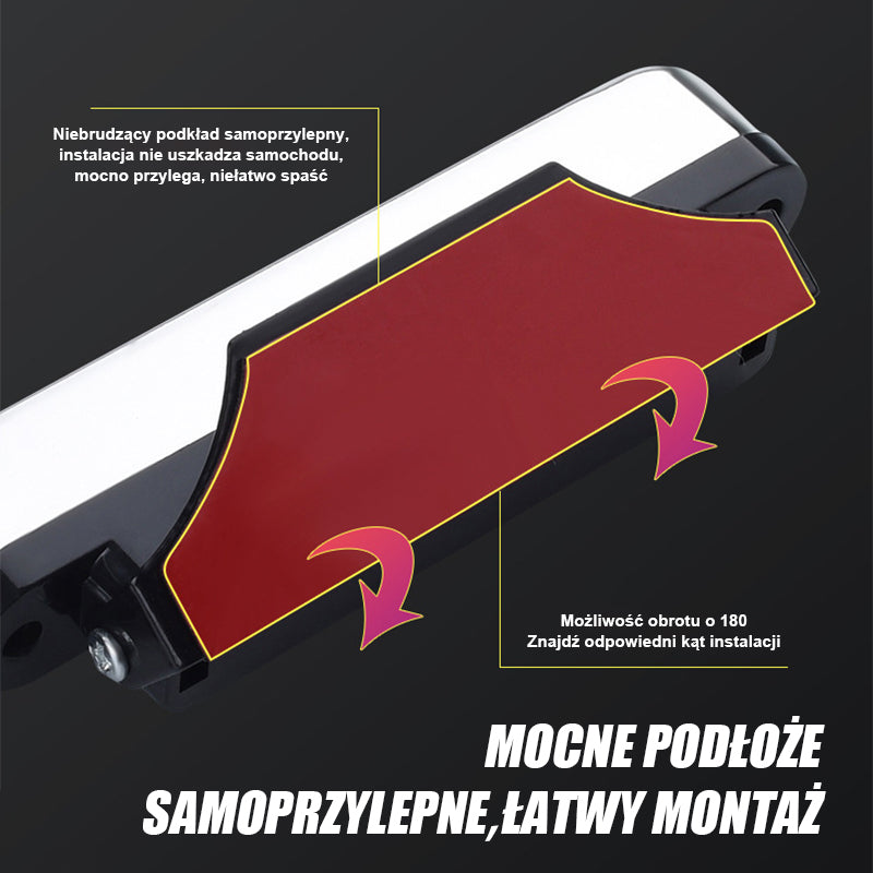 🚗Instalacja Ze Swobodnym Obrotem O 180°:łatwa w montażu. W komplecie z taśmą dwustronną, montowany w środkowej siatce z przodu samochodu. Swobodna regulacja kierunku o 180 stopni.