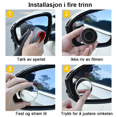 • Effektiv beskyttelse: Blindsonespeilet er designet med et innrammet ABS-skall for effektivt å beskytte høydefinisjonsglassspeilet. HD vidvinkelvisning gir ekstra sikkerhet for deg og familien din.