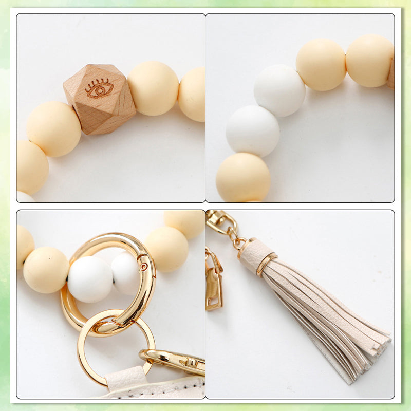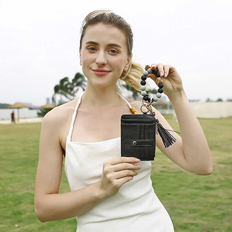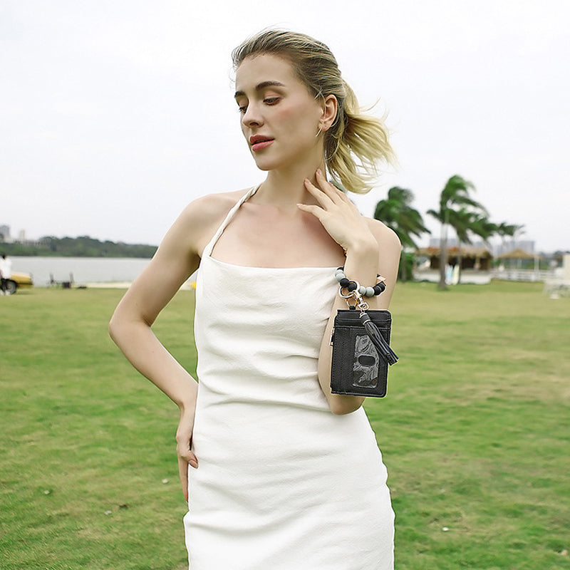 【Multifunctional Design】The key ring is detachable. Classic and stylish wristlet keychain with detachable mini wallet. The wallet can hold ID card, credit card, driver's license and cash. The smooth finish of the beads rolls smoothly on the wrist. The bracelet is stretchy and comfortable to hold, and the beads won't scratch your skin or cause any irritation. Easy to wear and not easy to fall off.
