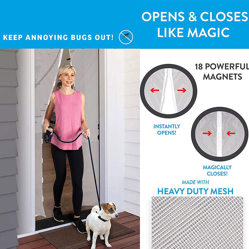 A great way to help block mosquitoes. The door mesh is a hands-free screen door that easily opens without hands and uses powerful magnets to instantly close itself to keep fresh air in and bugs out and is 30% stronger.