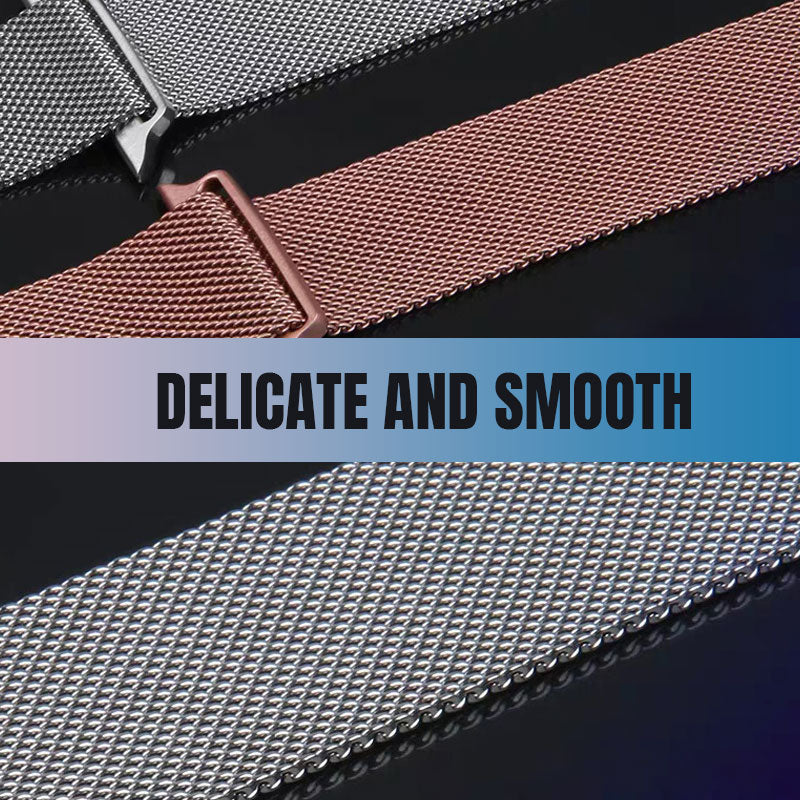 5.ăAdjustable for most wrist sizesă: The strap fits most wrists, no need to worry that this strap won't fit your small or big wrist. The strap with adjustable loop allows you to adjust the length of the strap to fit your wrist. Made of high quality stainless steel, the metal mesh bracelet provides a pleasant feeling on the wrist, the smooth surface of the bracelet will not scratch your clothes.