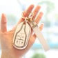 Our keychain has been upgraded, you will receive as shown below, Made of high quality zinc alloy, leather, artificial rhinestones.