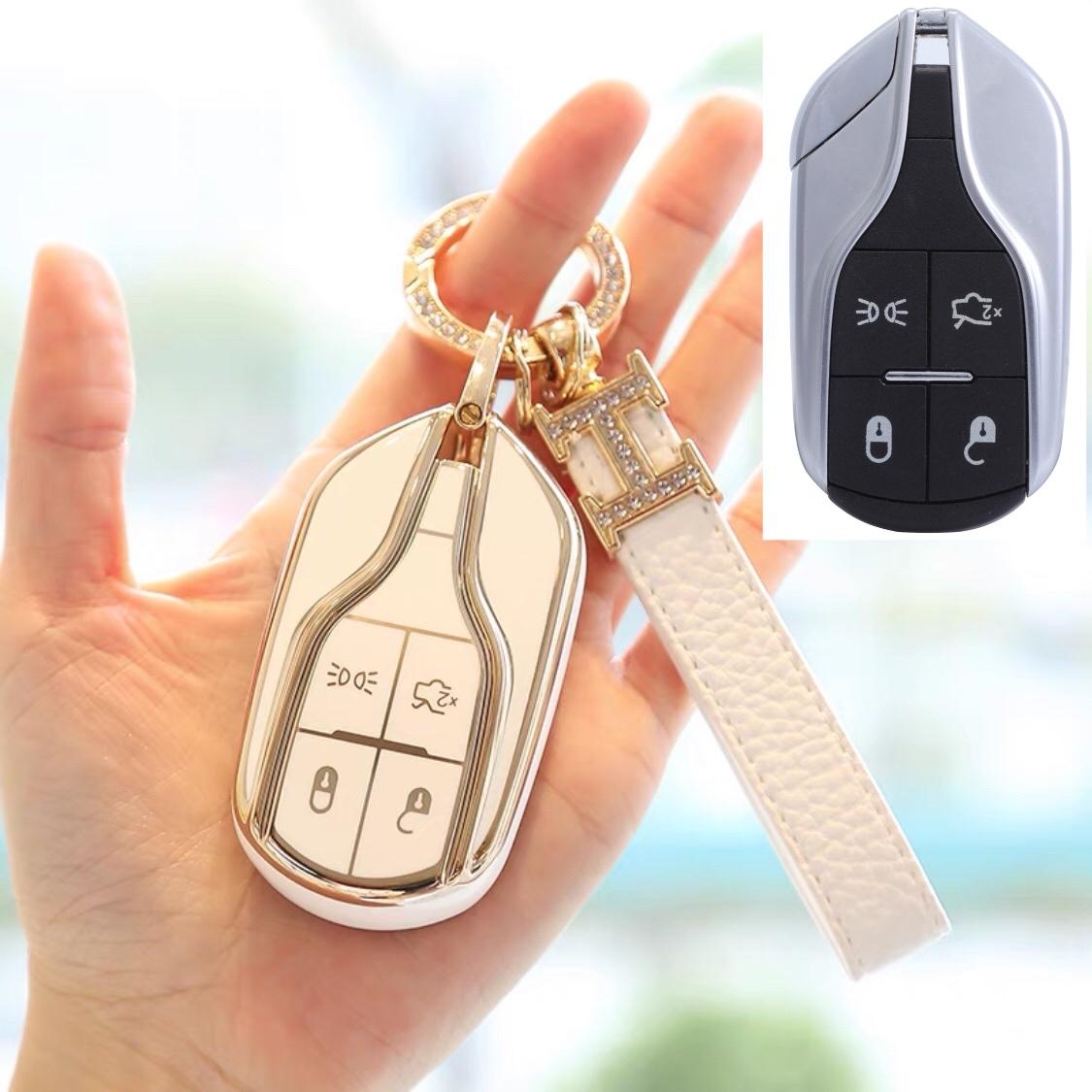 The back of this key cover is stitched with leather and it will not be scratched when you place your key on the table. The diamonds embedded in the edge of the key ring can be as brilliant as diamonds. It is noble and elegant, bright.