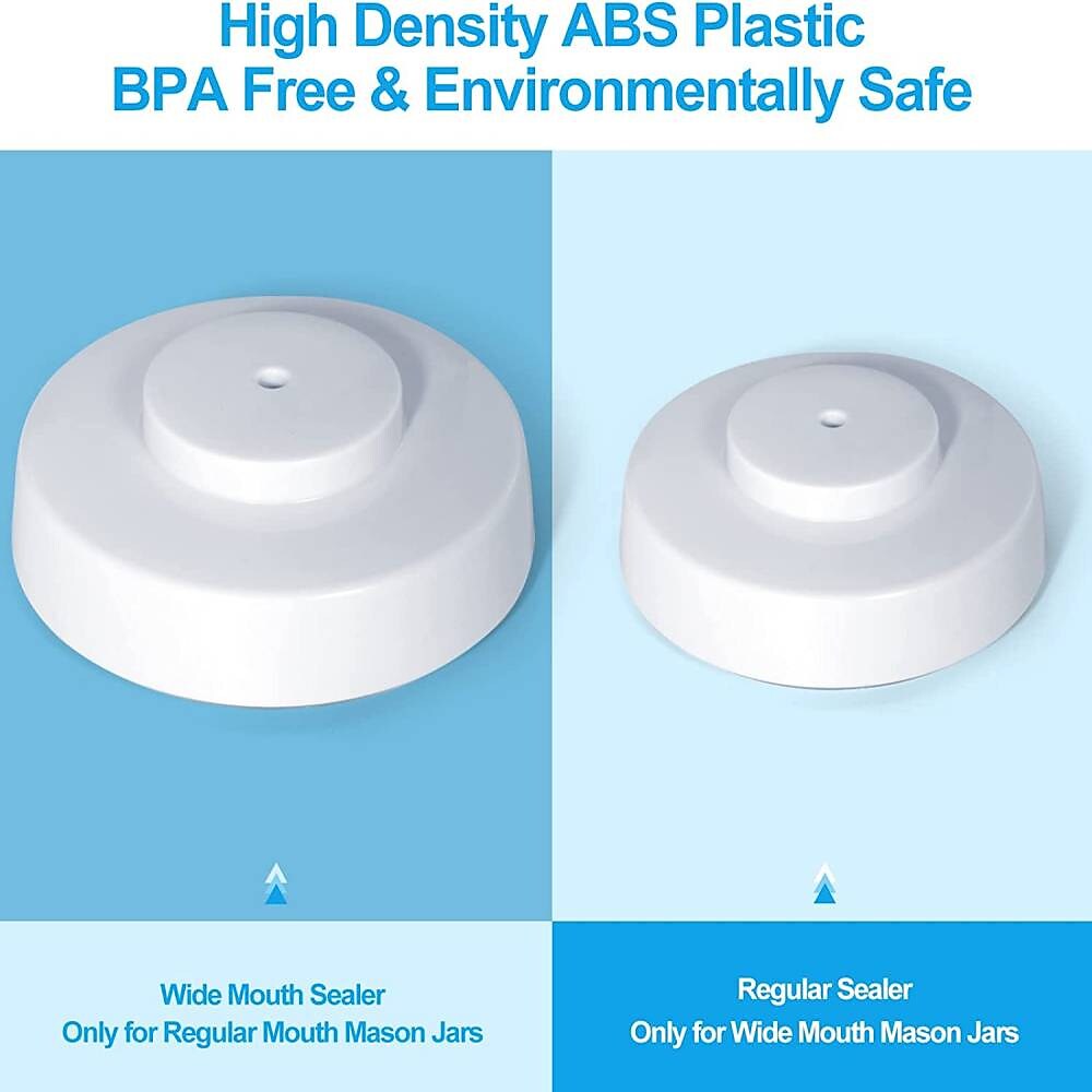 Jar sealer with 2 sizes are suitable for wide mouth and regular mouth jars. BPA-free, stain-resistant, odorless, and washable. Creates an air-tight vacuum seal to store food.